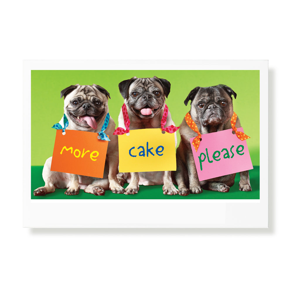 | Single folded greeting card with envelope. Printed responsibly on 5 x 7" premium cover weight recycled paper stock. Card back features the rescued Pug's Underdog profile. | |