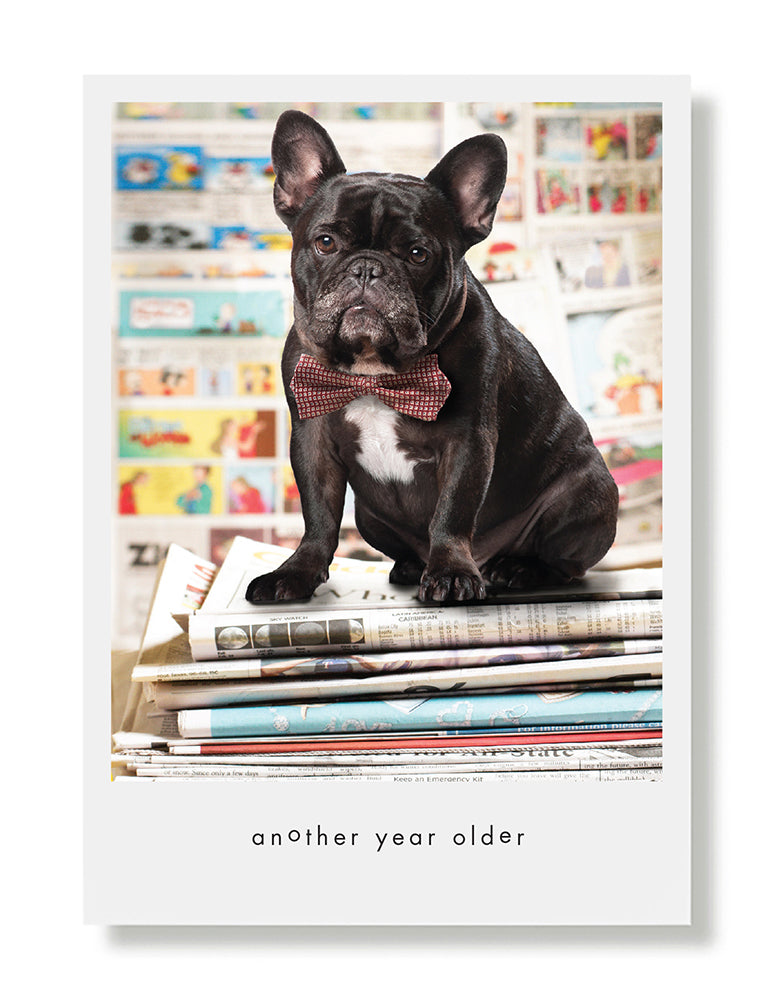 Single folded greeting card with envelope. Printed responsibly in the USA on 5 x 7" premium cover weight paper stock. Card back features the French Bulldog Underdog's profile. |